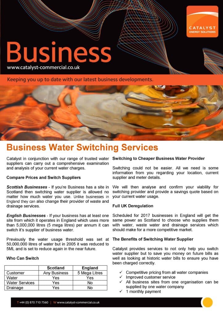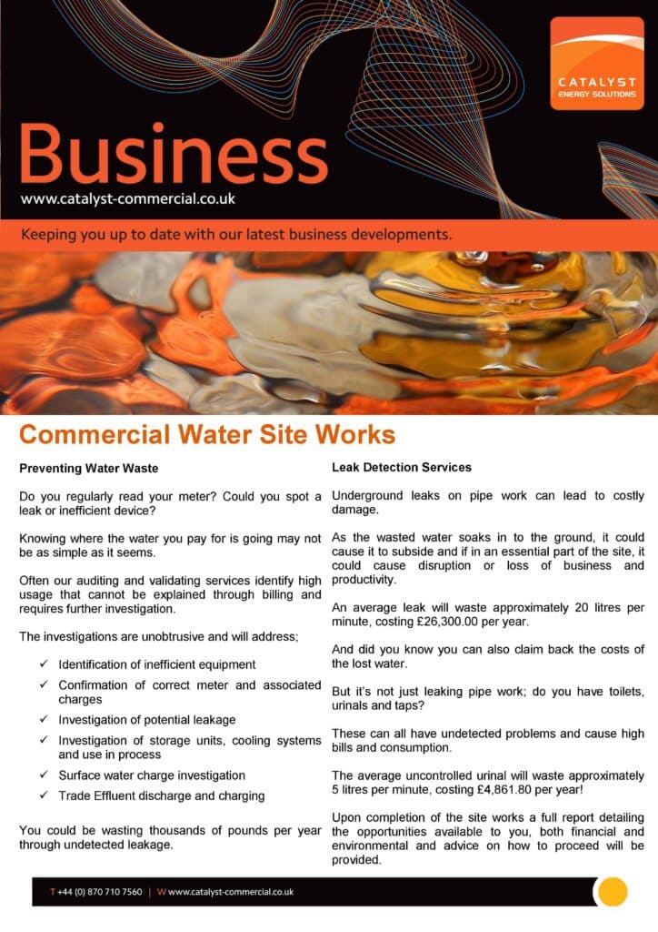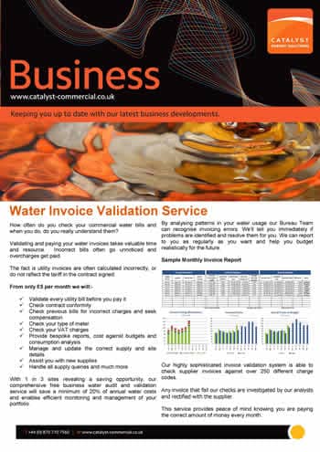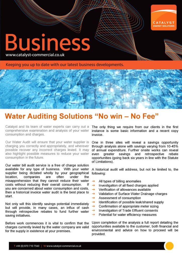 “Catalyst provides a totally FREE OF CHARGE desktop water analysis service that will highlight any errors meaning you could be saving an amazing 10-45% on your current water charges”
